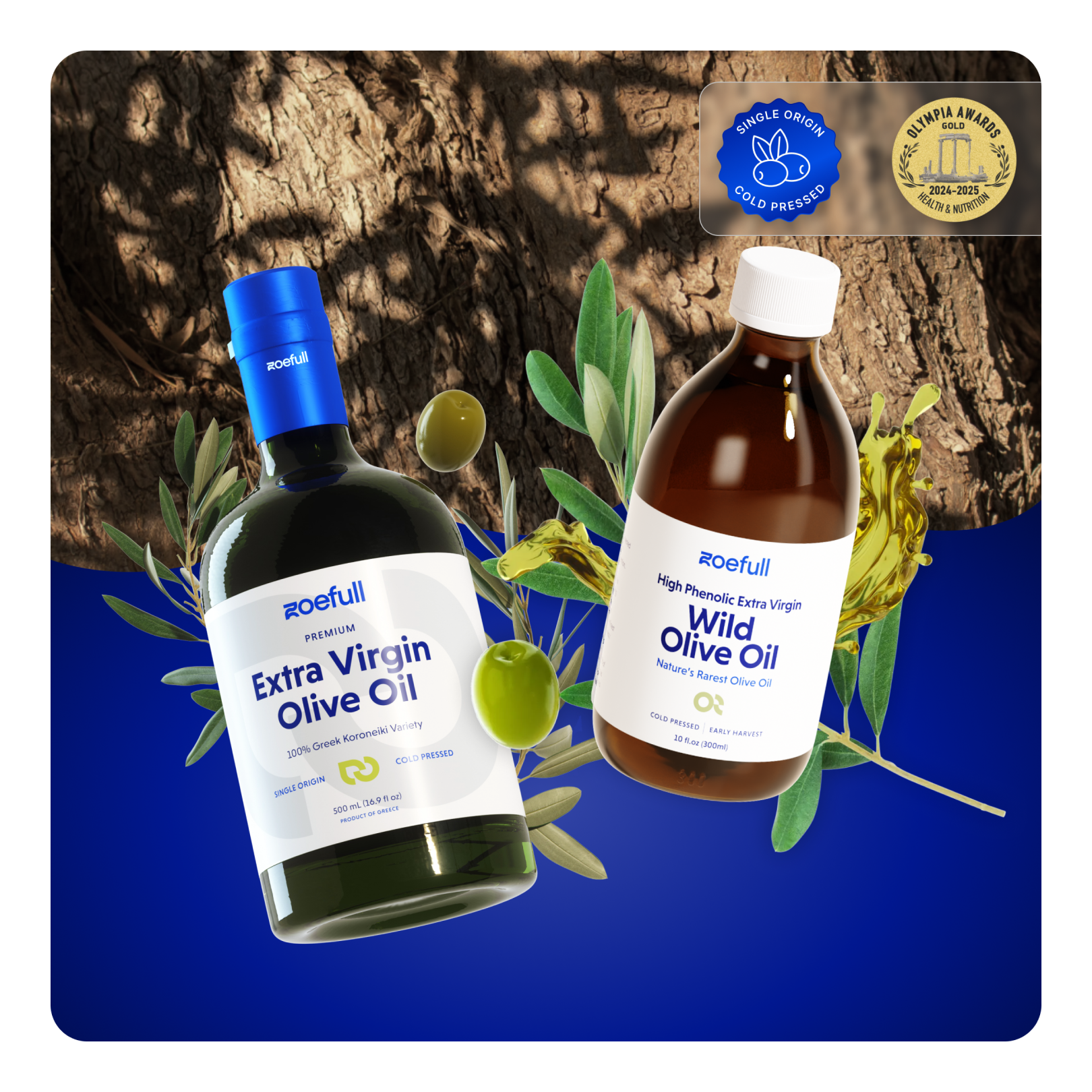 - Wild Olive Oil — ultra-high polyphenols (1796 mg/kg) from wild Greek olive trees
