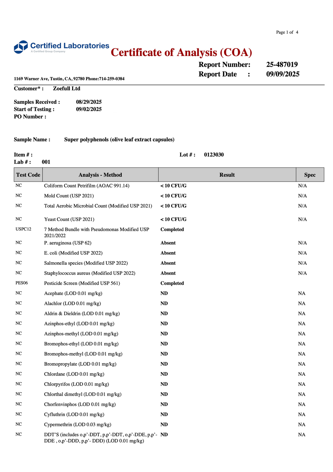 - Oleuropein (from Olive Leaf Extract) – 100 mg