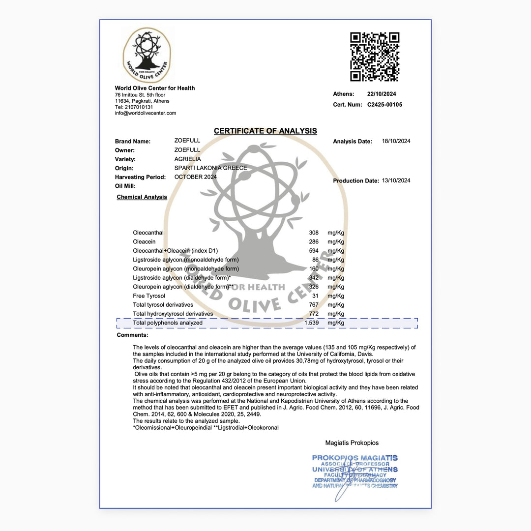 - 100% High Phenolic Extra Virgin Olive Oil from Greek, Spartan Wild Olives
